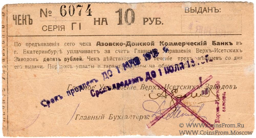 Азовско-Донской Коммерческий Банк (за счет Главного Управления Верх-Исетских заводов).