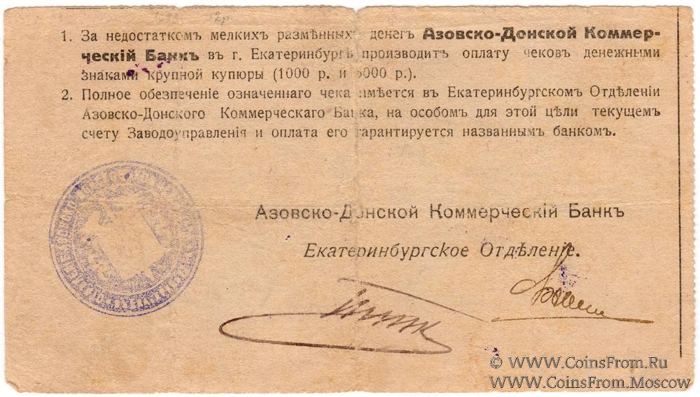 Азовско-Донской Коммерческий Банк (за счет Главного Управления Верх-Исетских заводов).