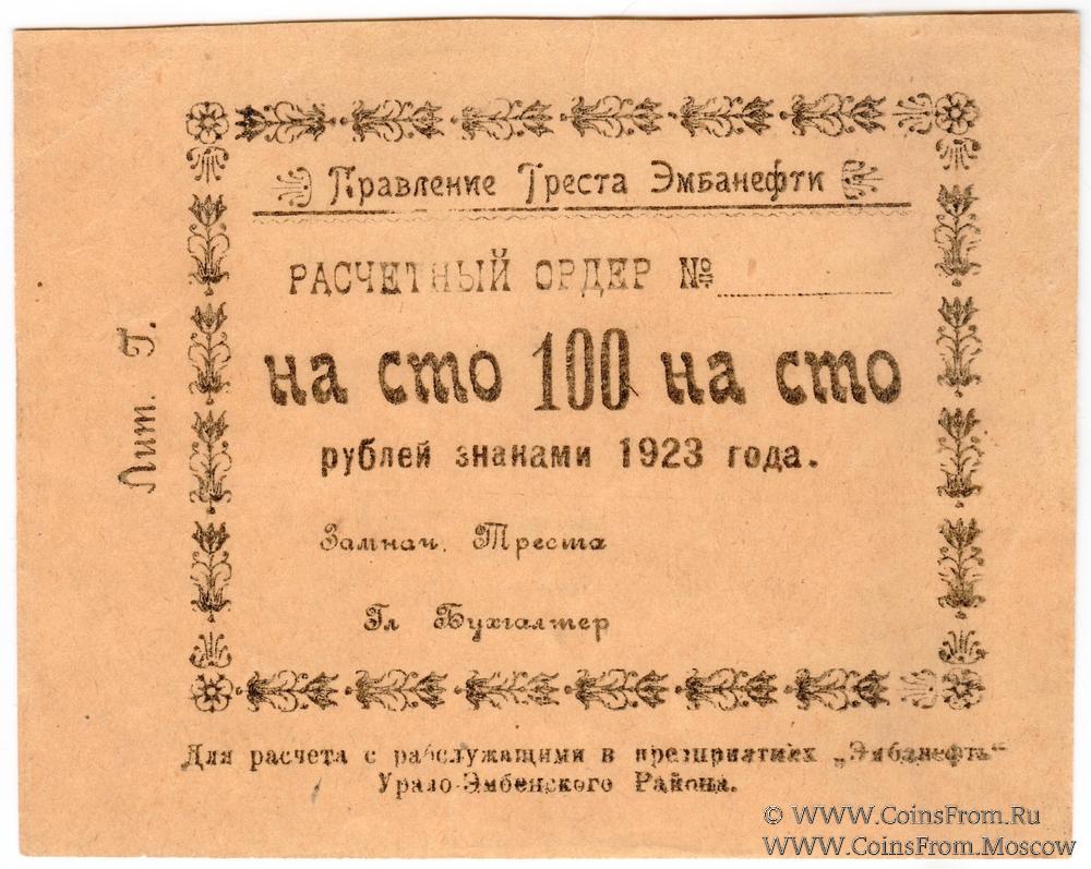 Расчетный ордер 1923 г. Бланк. Правление Треста Эмбанефть.