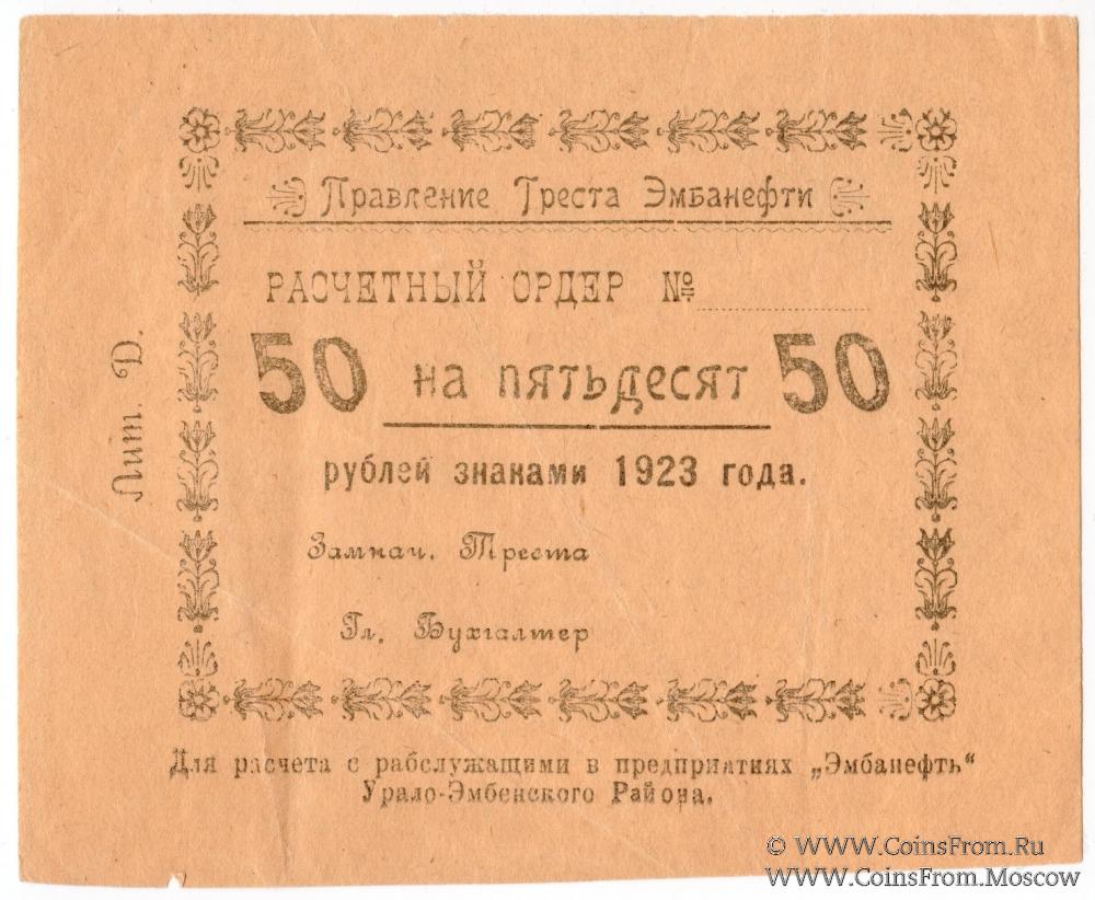 Расчетный ордер 1923 г. Бланк. Правление Треста Эмбанефть.