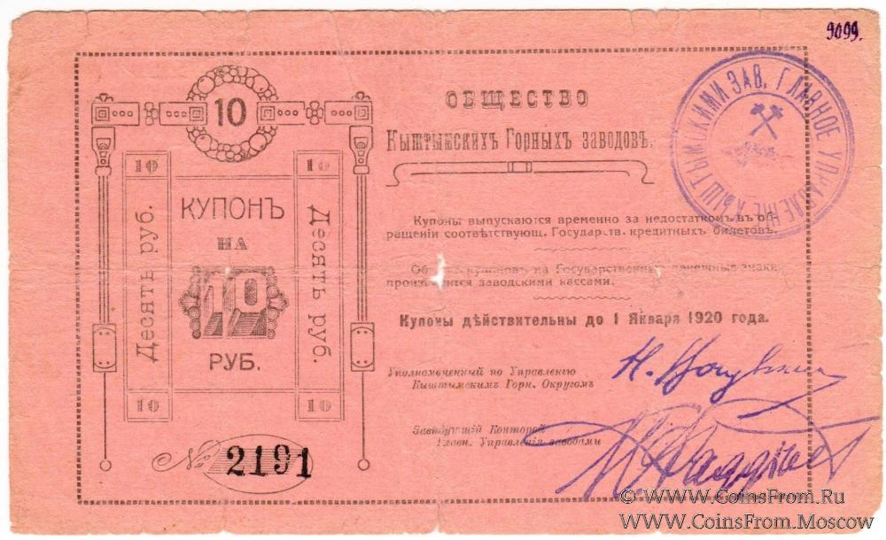 10 рублей 1919 г. (Кыштым)