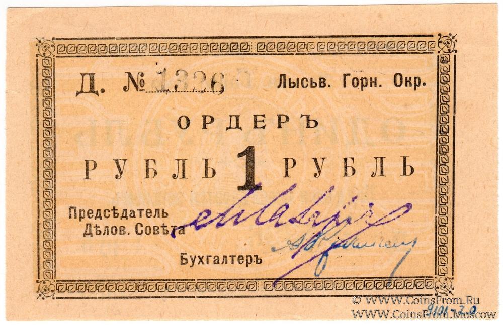 Ордер без даты 1918 г. Серия Д. Бланк. Бумага белая. Лысьвенский Горный Округ.