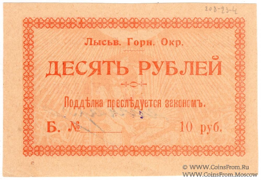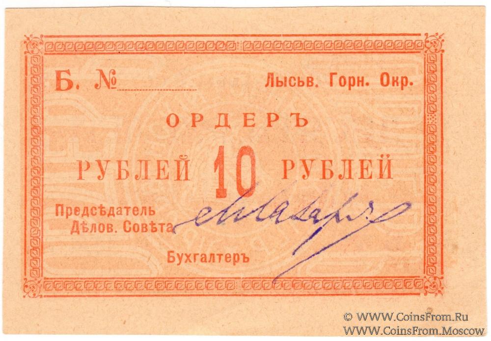 Ордер без даты 1918 г. Серия Б. Без номера. Подпись на аверсе. Бумага белая. Лысьвенский Горный Округ.