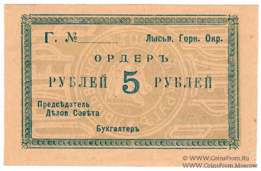 Ордер без даты 1918 г. Серия Г. Бланк. Бумага желтая. Лысьвенский Горный Округ.