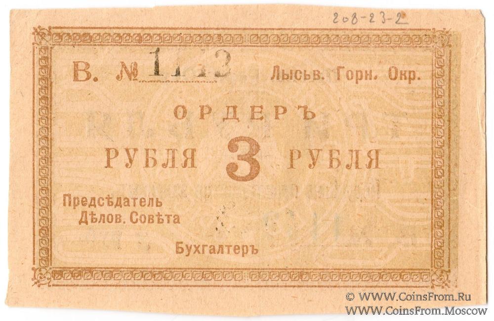 3 рубля 1918 г. (Лысьва)