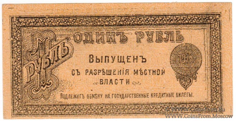 Денежный знак 1918 г. БРАК: смещение фона. Серия и номер красные. С разрешения местной власти (атаман Дутов А.И.).
