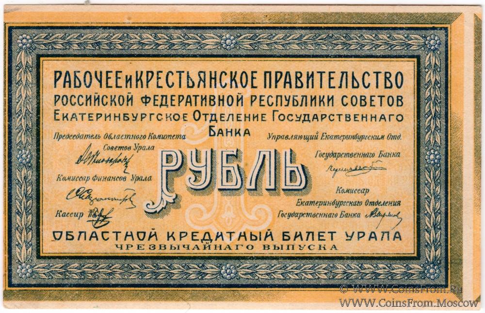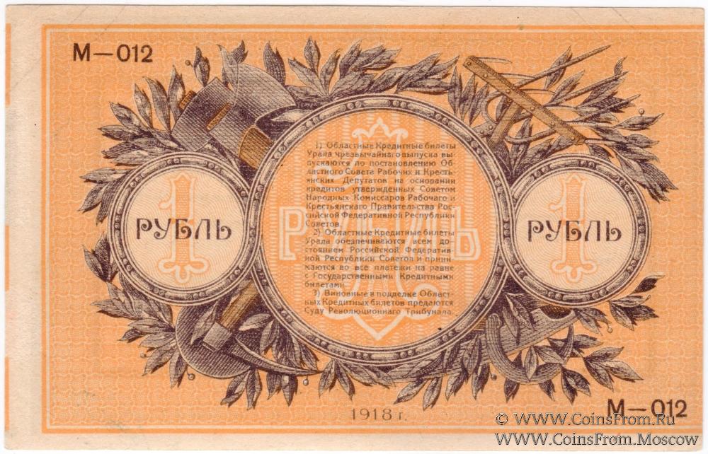 Уральский областной совет. Денежные знаки времен Гражданской Войны Урал и Прикамье.