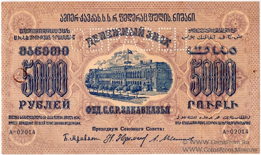 5.000 рублей 1923 г. ОБРАЗЕЦ (реверс)