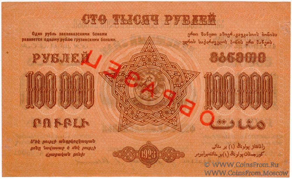 100.000 рублей 1923 г. ОБРАЗЕЦ (двусторонний)