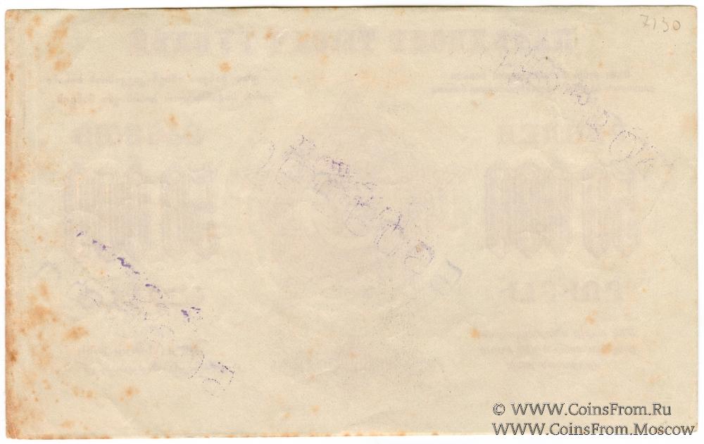 Денежный знак 1923 г. 3-й выпуск. Односторонний оттиск реверса.