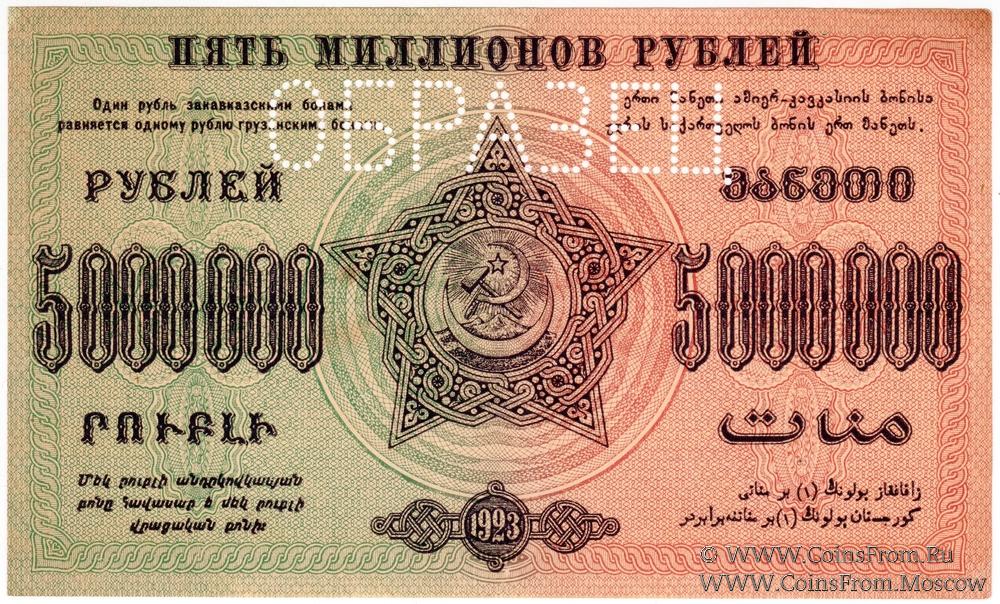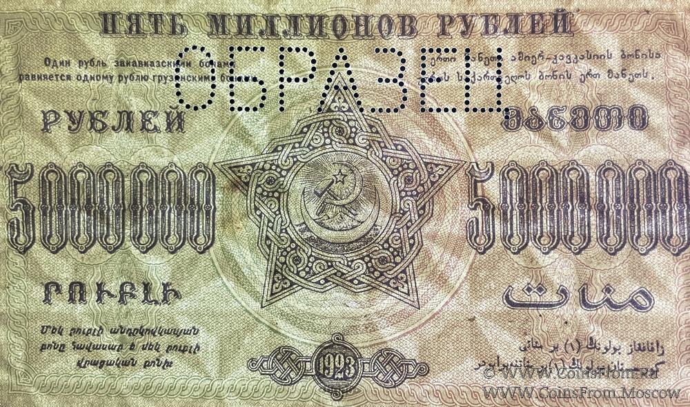 5.000.000 рублей 1923 г. ОБРАЗЕЦ (реверс)
