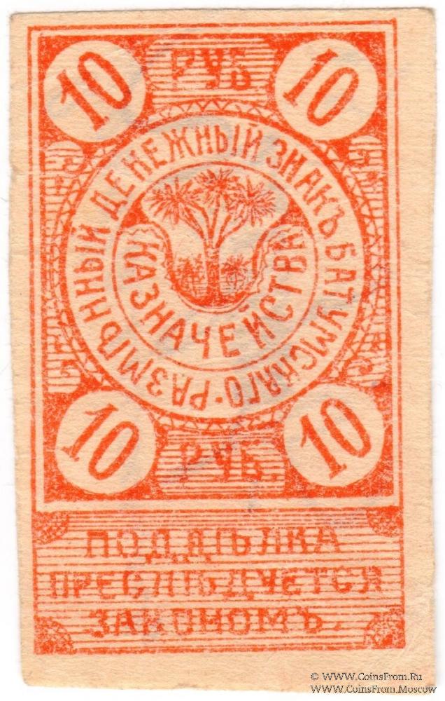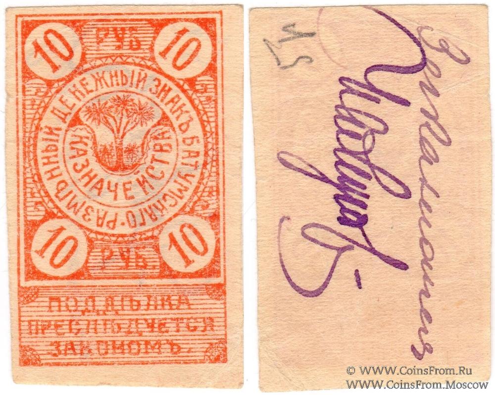 Разменный денежный знак без даты (1919 г.). Красный. С подписями на реверсе. Батумское Казначейство.