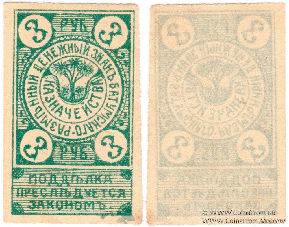 Разменный денежный знак без даты (1919 г.). Зелёный. Батумское Казначейство.