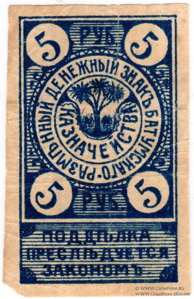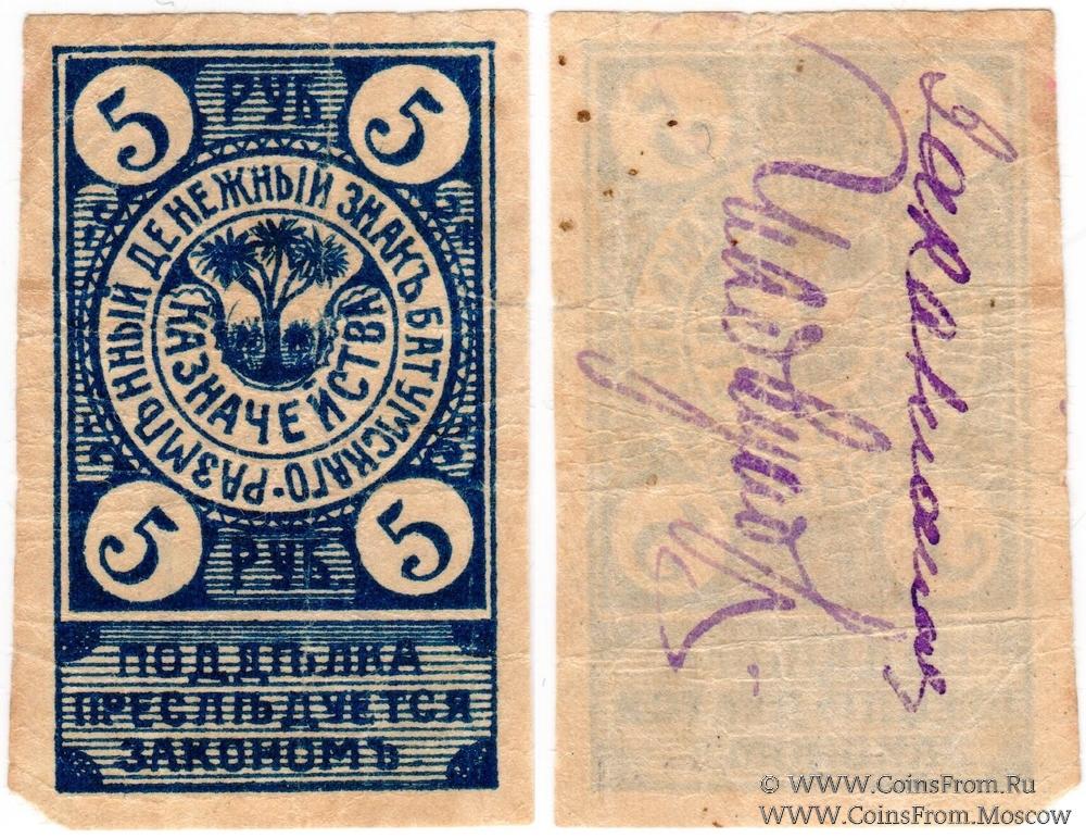Разменный денежный знак без даты (1919 г.). Темно-синий. С подписями на реверсе. Батумское Казначейство.