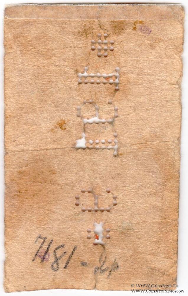 Разменный денежный знак без даты (1919 г.). Красный. Перфорация "*1919*". Батумское Казначейство.