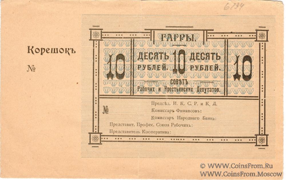 Временный Денежный Знак. БРАК: недопечатка реверса. Бланк с корешком. Совет Рабочих и Крестьянских Депутатов.