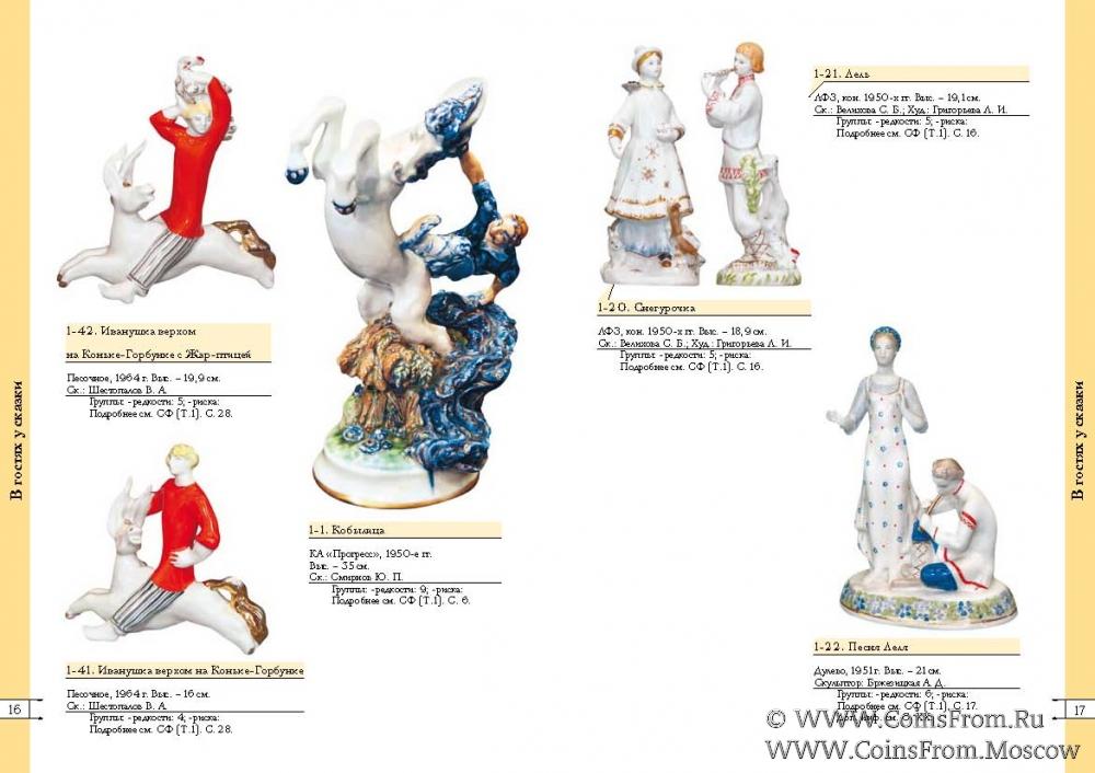 Предлагаемый вниманию читателей каталог советского фарфора 1930-1980-х гг. состоит из двух частей. В первой размещены репродукции более чем 170 скульптур и декоративных изделий из фарфора, выполненных на ведущих предприятиях СССР (ГФЗ/ЛФЗ, ЛЗФИ, ДФЗ, Дулевском, Первомайском, Городницком, Рижском, Ташкентском фарфоровых заводах, Киевском экспериментальном керамико-художественном заводе, Сысертском заводе керамических изделий, Полонском заводе художественной керамики, артели "Художественная керамика", заводе "Красный фарфорист". Краснодарском фарфоро-фаянсовом заводе "Чайка" и др.). Каждая страница каталога задумана как своеобразная справочная карточка в домашней тематической картотеке коллекционера отечественного фарфора, где приведена иллюстрация, указаны наименование предмета, его назначение, место и время производства, авторы модели и росписи, размеры, материал, год создания модели, местонахождение фигуры, публикации, участие в выставках, награды, литературный или исторический сюжет. Для настоящего издания были выбраны темы - "На страже Родины", "Советский спорт", "Охота и рыбалка", "В гостях у сказки", "Литература", "Счастливое детство. Школьные годы", "Фарфоровая скульптура для домашней библиотеки". Во второй части опубликованы биографии мастеров-фарфористов с описанием работ; статья о выставках советского фарфора, фаянса и майолики в 1919-1940 гг.; история Сысертского завода керамических изделий и Коростенского фарфорового завода.