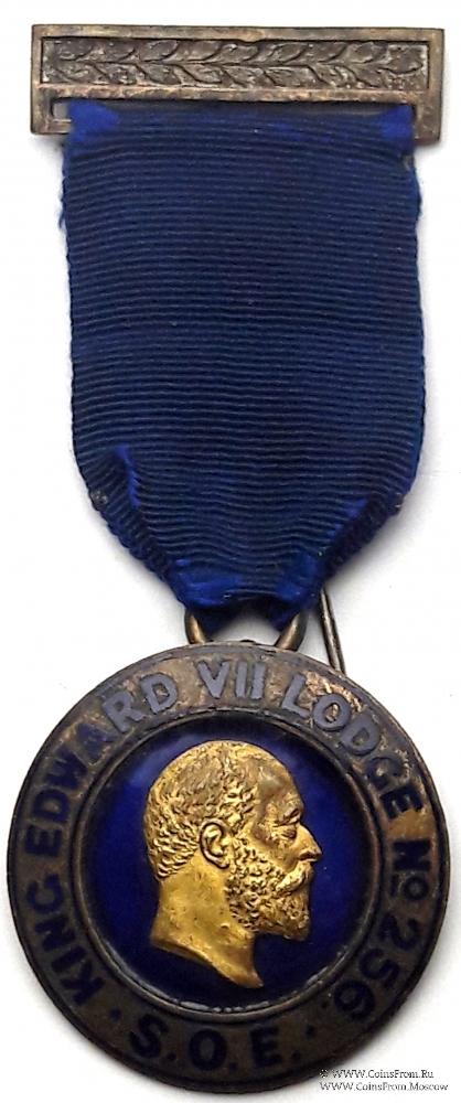 АВЕРС: двойной круг с наименованием и номером Ложи KING EDWARD VII LODGE № 256 S.O.E. В центре накладное изображение профиля короля Эдуарда VII, повёрнутого вправо.
