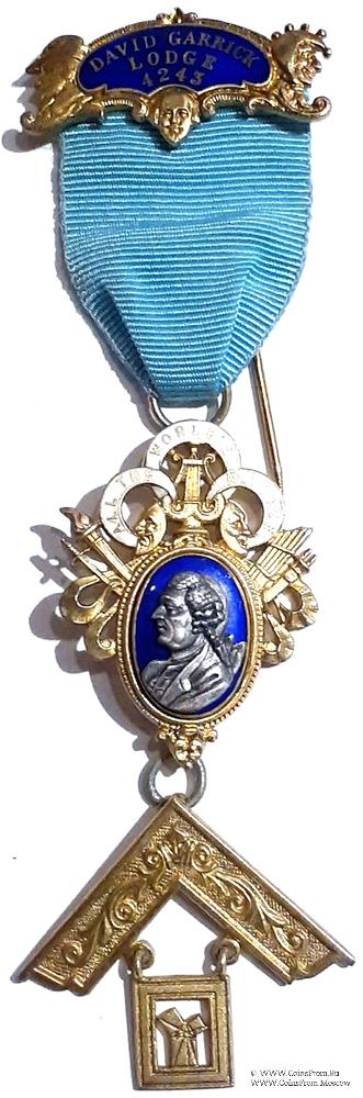 РЕВЕРС: гравировка: Presented with Appreciation to W. Bro. Victor Charles Smith as 62nd Master of the David Garrick Lodge № 4243 on the 17th Nov. 1983. - Представлен с благодарностью Уважаемый Брат Виктор Чарльз Смит как 62-й мастер ложи Дэвида Гаррика № 4243 17 ноября 1983 г. Клейма: верхняя часть – лев, q, наугольник: TK&S, якорь, лев, q (1983). Подвеска – лев.