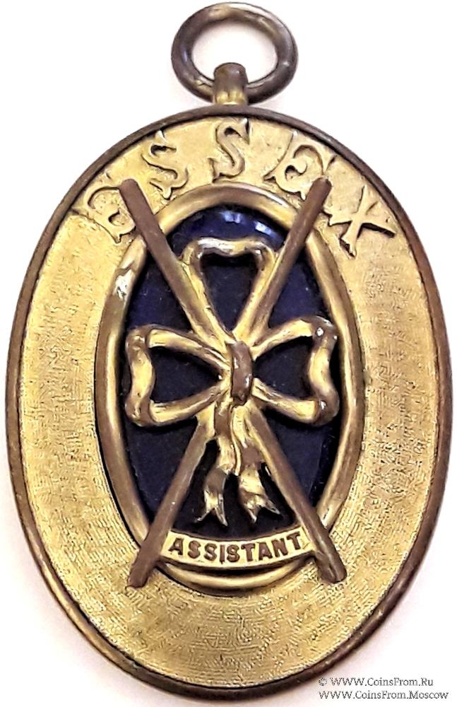 ЗНАК: основной металл, покрытие, пластик. АВЕРС: овальной формы жёлтого цвета в центре на синем фоне два перекрещенных жезла перевязанные лентой. В нижней части жезлы соединены лентой с надписью ASSISTANT –помощник – символ Помощника Церемониймейстера. В верхней части двойного круга наименование провинции. РЕВЕРС: без гравировок и клейм. Выпуск после 1965 г. КОЛОДКИ/МЕДАЛЬОН: нет. ЛЕНТА: знак носится на синей нашейной ленте или на синей ленте с колодками для ношения на груди.