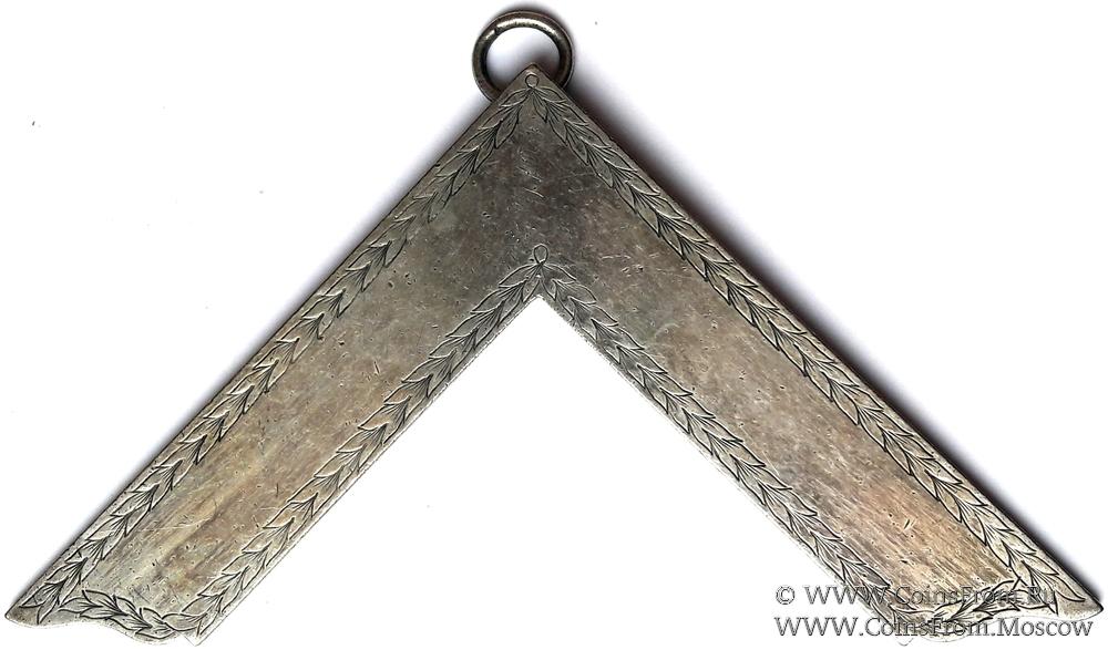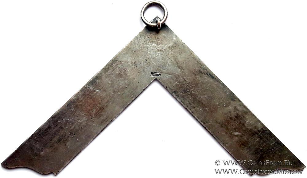 ЗНАК: основной металл. АВЕРС: в форме наугольника. Гравировка в виде листьев по кругу. РЕВЕРС: клеймо: BLISS LONDON. Выпуск: Лондон. КОЛОДКИ/МЕДАЛЬО: нет. ЛЕНТА: знак носится на голубой или синей (для провинциальных Лож) ленте.