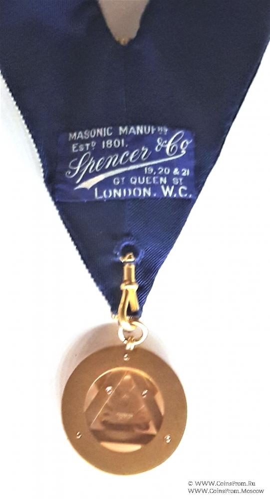 Лента: Материал - муар Длина – 500 мм Ширина – 50 мм Знак: Действующий Великий Писец (секретарь) Провинции Бомбей Страна: Англия. Материал: бронза, позолота. Клейма: TOYE&Co LONDON. Выпуск: Лондон. Год выпуска: 1961. Форма: подвеска.