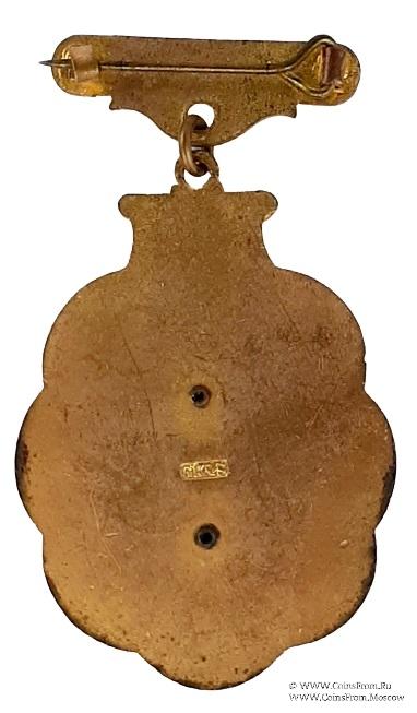 АВЕРС: в виде большого герба, состоящего из щита, двух щитодержателей, короны, шлема, нашлемника или клейнода, мантии и девизной ленты с девизом на латыни. По периметру наименование благотворительного заведения. В верхней части дата 1956. Колодка голубой эмали с надписью Steward.