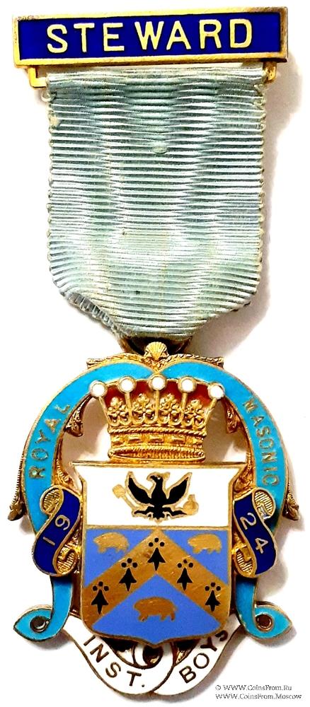 Знак RMIB 1924. STEWARD ROYAL MASONIC INSTITUTION FOR BOYS. – Королевский Масонский институт для мальчиков.