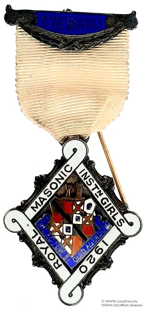 АВЕРС: в виде ромба, образованного белой лентой, с наименованием благотворительного заведения и даты 1920. В центре малый герб в виде щита с символикой, двумя клейнодами сверху и девизом на латыни на синей ленте снизу: Nil Actum si Quid Agendum.