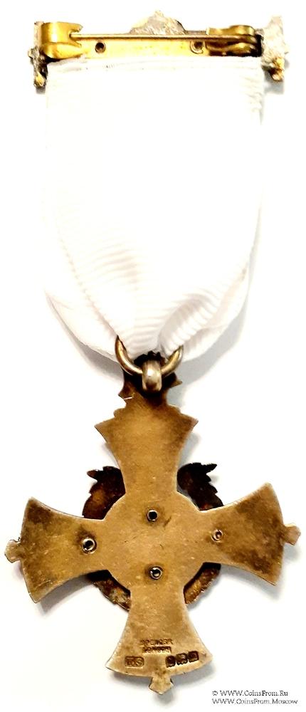АВЕРС: в виде креста белой эмали. На концах лучей наименование благотворительного заведения. Верхний луч украшен изображением парусного корабля на бурелете. Три остальных луча украшены короной. На верхнем луче корона красной эмали на белом поле. В центре креста объёмный портрет, окружённый венком