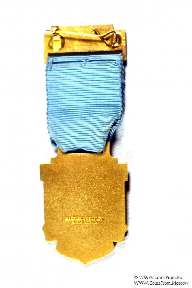 Верхняя колодка синей эмали с надписью STEWARD, двумя звёздами и орнаментом. Булавка для ношения с обратной стороны.