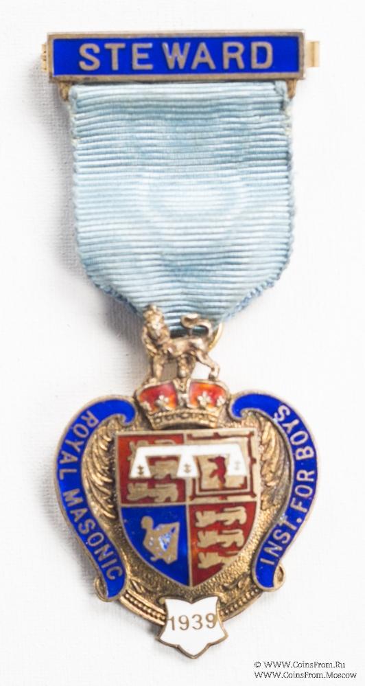 Знак RMIB 1937. STEWARD ROYAL MASONIC INSTITUTION FOR BOYS. – Королевский Масонский институт для мальчиков.