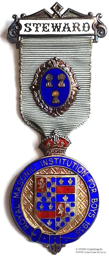 Знак RMIB 1933. STEWARD ROYAL MASONIC INSTITUTION FOR BOYS. – Королевский Масонский институт для мальчиков.