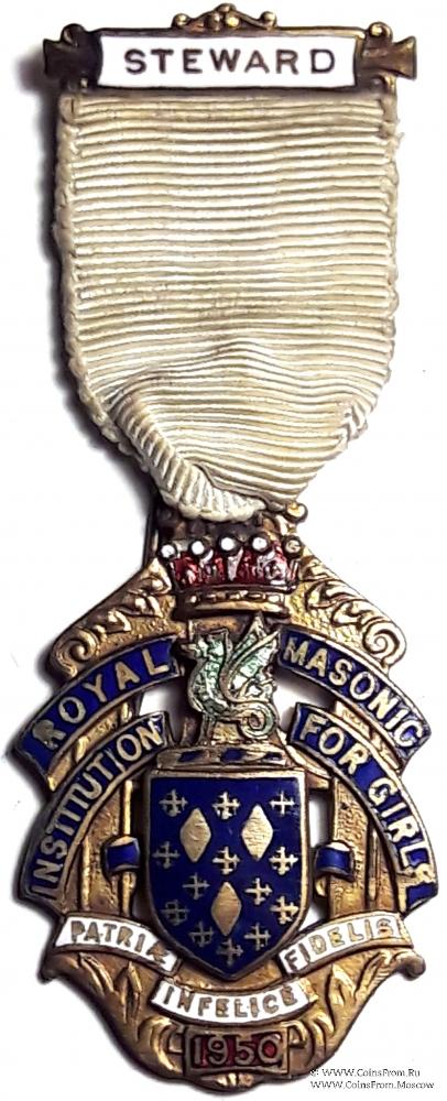 Цвет ленты белый. Верхняя колодка белой эмали с надписью STEWARD и иглой для ношения с обратной стороны.