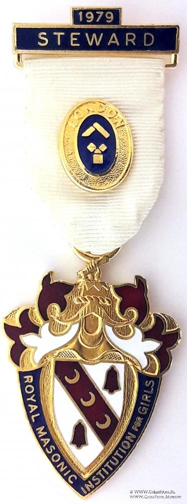 Знак RMIG 1979. STEWARD ROYAL MASONIC INSTITUTION FOR GIRLS. – Королевский Масонский институт для девочек.