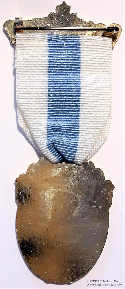 Знакна двухцветной бело-голубой ленте, что говорит о двух типах благотворительных учреждений: для мальчиков и для девочек. Верхняя колодка в виде ленты зелёной эмали с надписью STEWARD, орнаментом вокруг и булавкой для ношения с обратной стороны. Лента непосредственно, без металлической колодки, соединена с прорезью в знаке.
