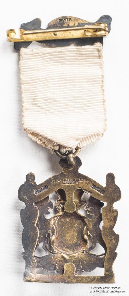 Цвет ленты белый. В центре ленты медальон в форме малого герба в виде щита с красным драконом на зелёном поле - символ Уэльса. (Страна, одна из четырёх главных административно-политических частей Соединённого Королевства Великобритании и Северной Ирландии, в прошлом конгломерат независимых кельтских королевств. Уэльс расположен на юго-западе Великобритании). Верхняя колодка в виде ленты сине-белой эмали с надписью STEWARD 1926 и булавкой для ношения с обратной стороны. В низу лента непосредственно, без металлической колодки, соединена с кольцом знака.