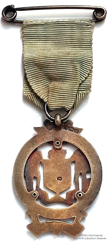 КОЛОДКИ/МЕДАЛЬОН: верхняя колодка отсутствует, вместо неё булавка для ношения. В низу лента без металлической колодки, соединена с кольцом знака.