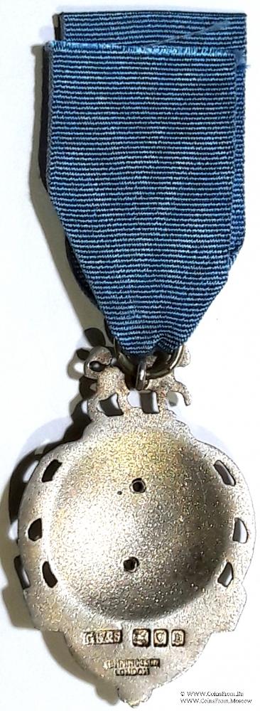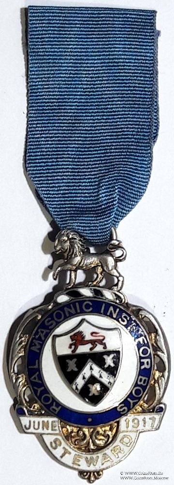 Аверс: двойной круг синей эмали с наименованием благотворительного института. В центре знака накладной щит. На главе щита шагающий лев. Основная часть щита разделена леопардовым стропилом. В трёх частях изображение символов. Ниже круга белая лента на фоне орнамента с надписью STEWARD JUNE 1917. В верхней части круга на чёрно-белом бурлете размещён клейнод в виде фигуры ша-гающего льва.