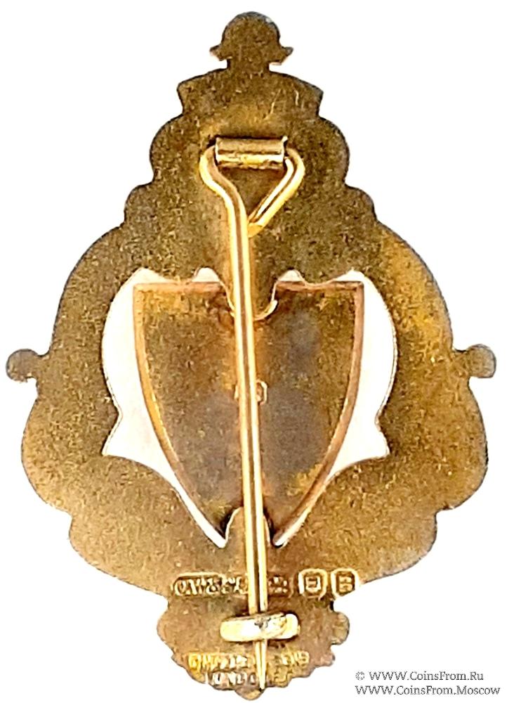 РЕВЕРС: с вертикальной булавкой для ношения. Клейма: C. Weeden 7 Son London EC CW&S& лев, голова леопарда, В. Год выпуска 1937.