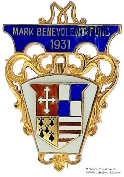 АВЕРС: в форме замкового камня, на котором изображение малого герба. Замковый камень окружён орнаментом. Верхняя часть знака украшена пластиной синей эмали с наименованием благотворительного фонда и даты 1931. Сверху пластины размещена резная буква М.
