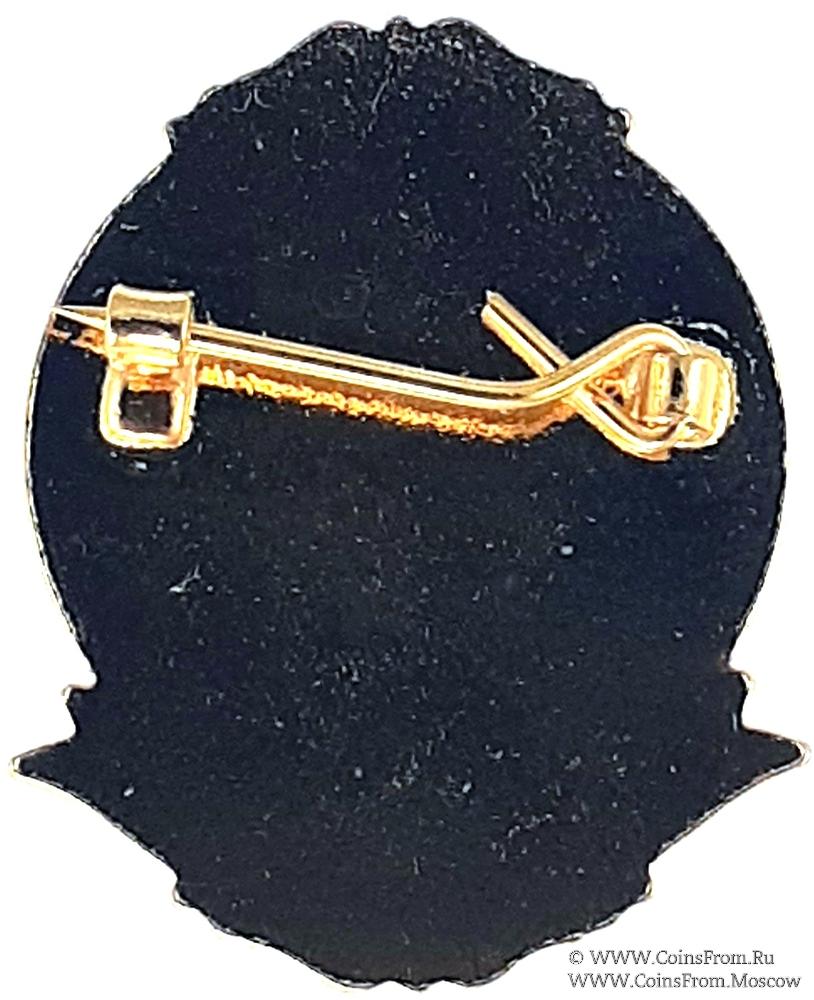 РЕВЕРС: глянцевый с горизонтальной булавкой для ношения. Без гравировок и клейм. Год выпуска 2002.