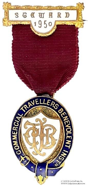 АВЕРС: двойной овал из подвязки синей эмали с наименованием благотворительного заведения Commercial Travellers Benevolent Institution. В центре накладной щит с аббревиатурой заведения (CTBI).