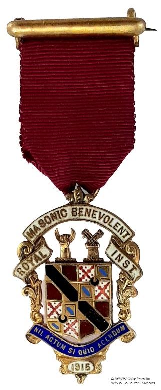 АВЕРС: в виде щита с символикой, верх щита украшен двумя клейнодами. Слева и справа щит окружён орнаментом, который вверху соединяет лента с наименованием благотворительного заведения. Иже щита девизная лента с надписью на латыни. В нижней части знака дата проведения фестиваля 1915.