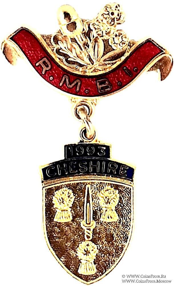 АВЕРС: в форме щита с символикой провинции название которой и дата написаны выше щита CHESHIRE 1993 (Че́шир (Cheshire, архаичное название — графства Честер) − графство в северо-западной Англии).