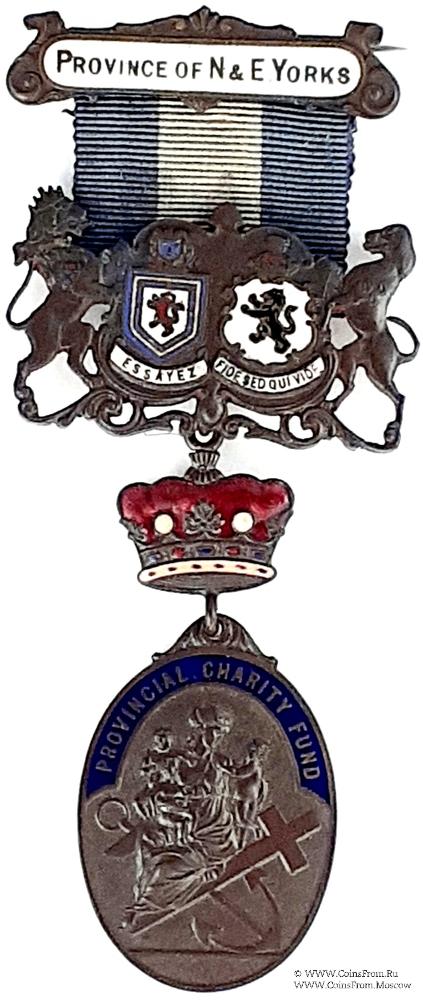 АВЕРС: состоит из трёх частей. Гербовой части с символикой Северного и Восточного Йоркшира, выполняющей так же роль нижней колодки, короны и самого знака овальной формы с изображением женщины с детьми и перекрещенных якоря и креста. В верхней части надпись Provincial Charity Fund (провинциальный благотворительный фонд).