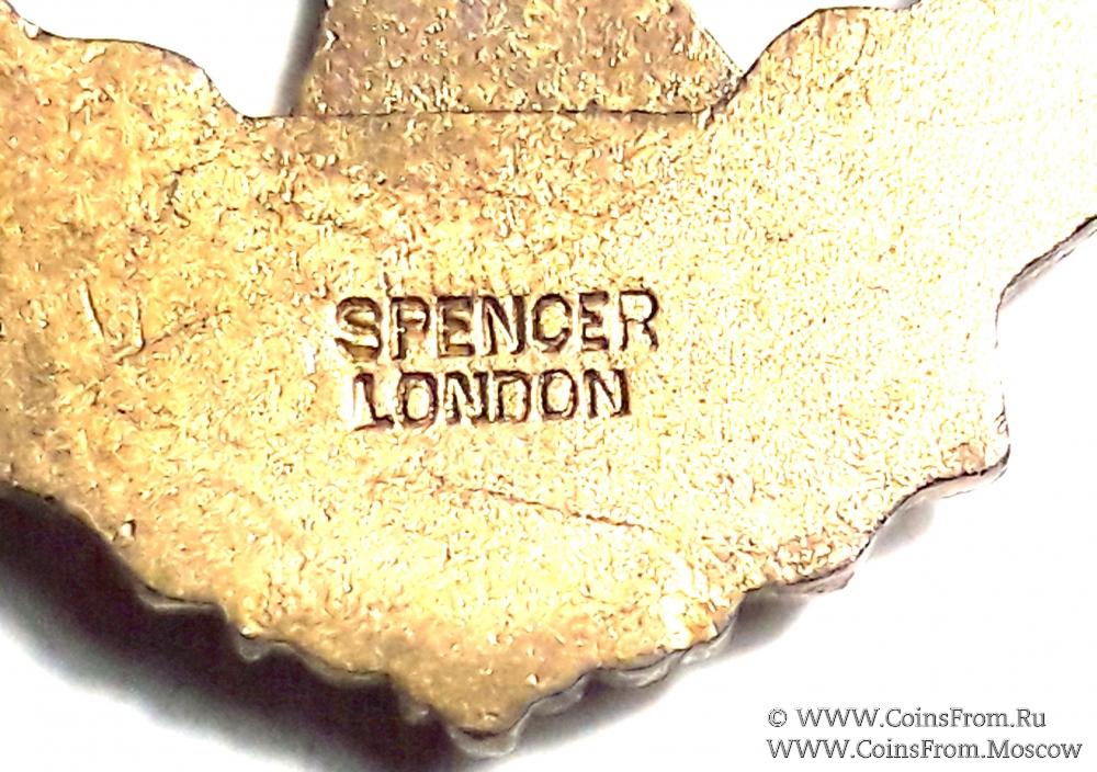 Лента знака красная. Верхняя колодка в виде планки увенчанной короной с подвешенной лентой с кистями и надписью STEWARD. Игла для ношения с обратной стороны. В низу лента соединена с прорезью в знаке.