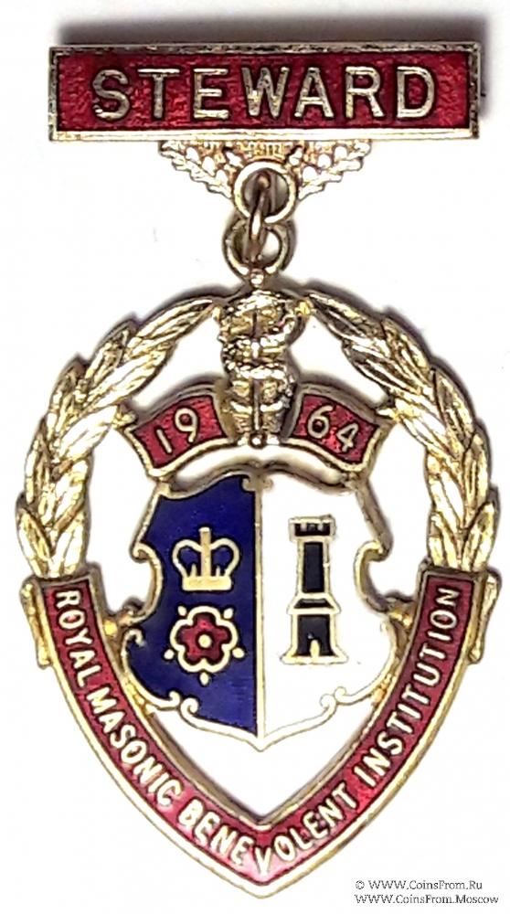 Знак RMBI 1964. STEWARD ROYAL MASONIC BENEVOLENT INST. – Королевский Масонский Благотворительный институт.