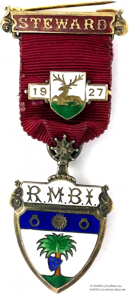 Знак в виде щита, выше которого на белой эмали надпись RMBI. На главе щита в центре изображение солнца и 2 круглых предмета по бокам. Из основания щита зелёной эмали изображена пальма, на стволе которой наклоненый щит синей эмали с тремя точками, в которых изображён циркуль. В качетве клейнода использовано изображение руки, сжимающей 7 кинжалов, образующих лучи. Клейнод через венец (бурлет) соединён со знаком.