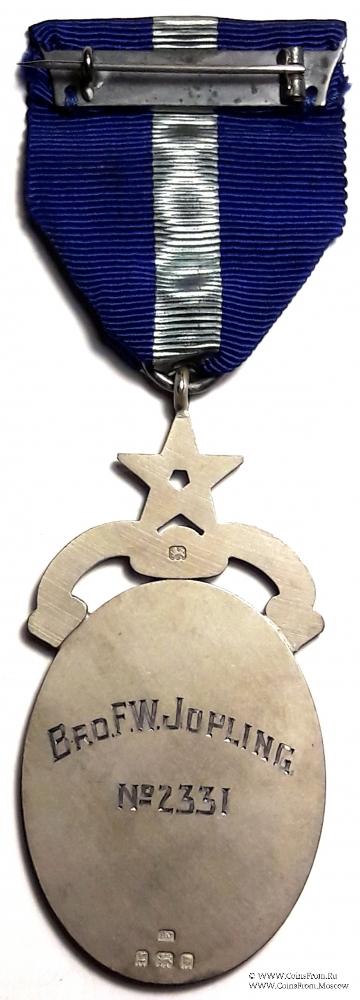 Знак на синей ленте с голубой полосой по центру. Верхняя колодка, скрытая с булавкой для носки. В низу лента непосредственно крепится за кольцо знака. На аверсе справа в низу буквы C.L.D. Гравировка на реверсе: BRO. F.W.JOPLING. № 2331.